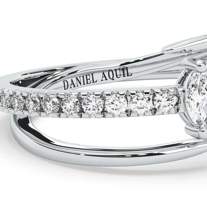 At the center lies a marquise-cut stone, delicately held in a raised setting that draws the eye with its elongated...