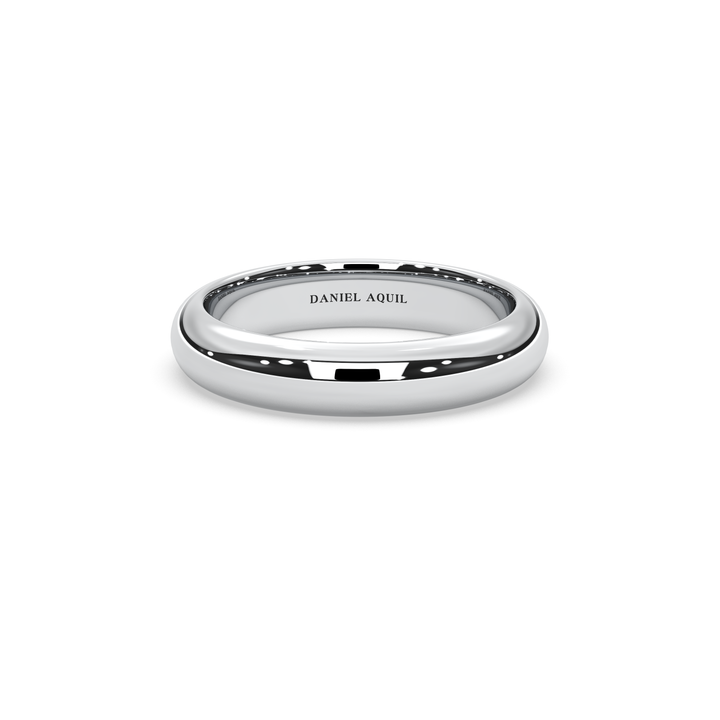 Its cool-toned, high-polish surface creates a sleek uninterrupted shine, giving the ring a contemporary, airy presence.Thoughtfully crafted for all-day comfort, the slim profile makes it perfect for layering or wearing solo as a refined minimalist statement.