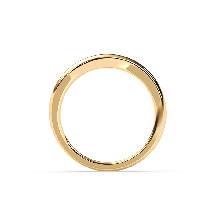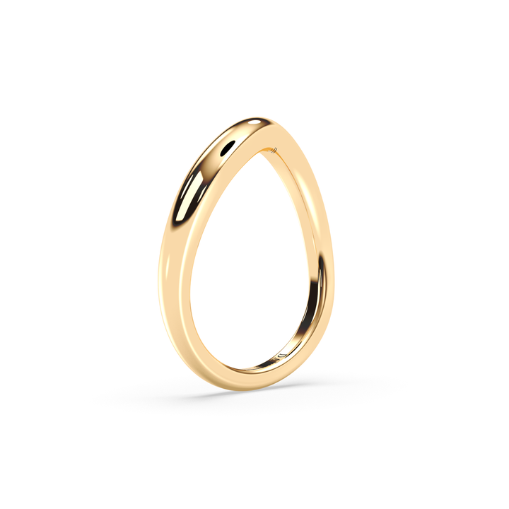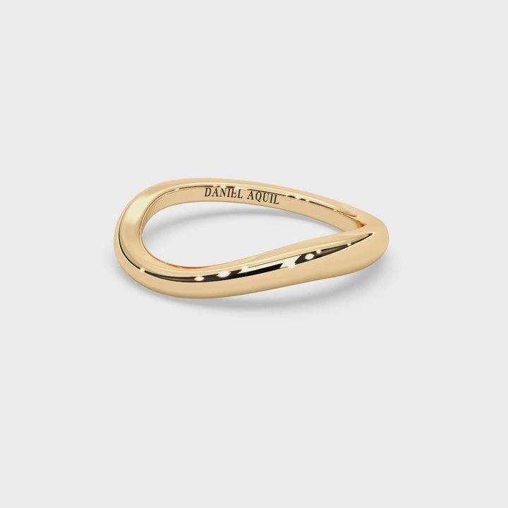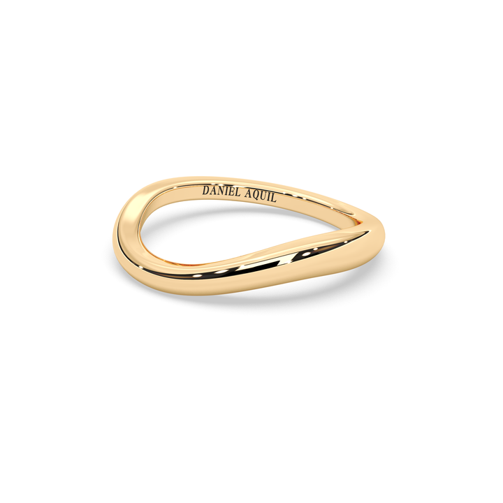 The high-polish gold surface glows with a soft, radiant warmth, giving the piece a luxurious yet effortless appeal. Its organic curve creates a subtle statement — bold enough to stand alone, yet refined enough to pair seamlessly with other bands and engagement rings.