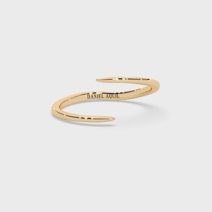 Crafted with a warm, radiant glow, the Golden Arc Open Band brings a touch of modern elegance to any look. Its fluid, open-ended silhouette curves gracefully around the finger, creating a soft, organic shape that feels both artistic and effortless.The high-polish gold finish adds a luxurious sheen, enhancing the clean lines and sculptural form of the ring. Designed to feel feather-light and comfortable, it offers a refined minimalist presence that pairs beautifully with other gold pieces — or stands alone as a subtle statement.