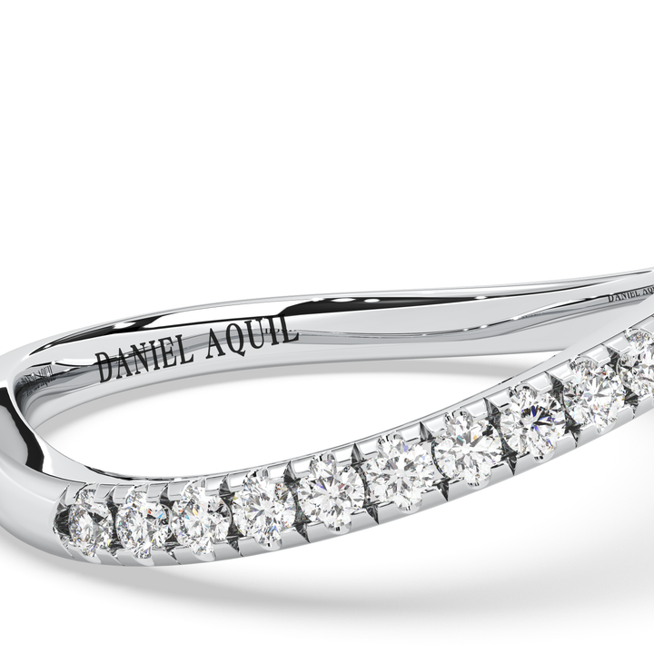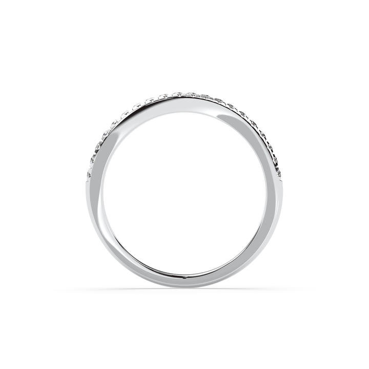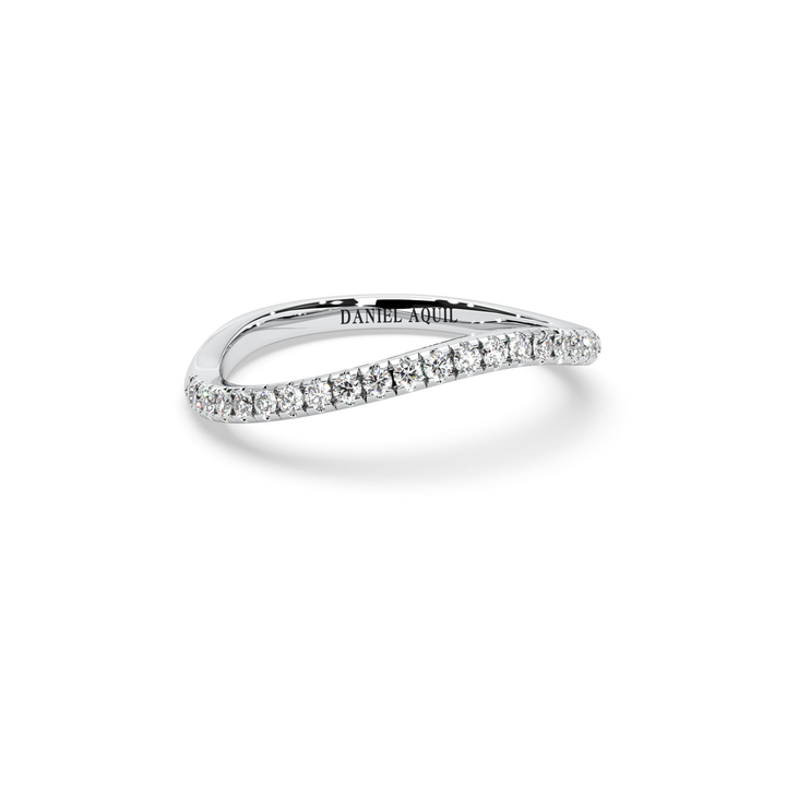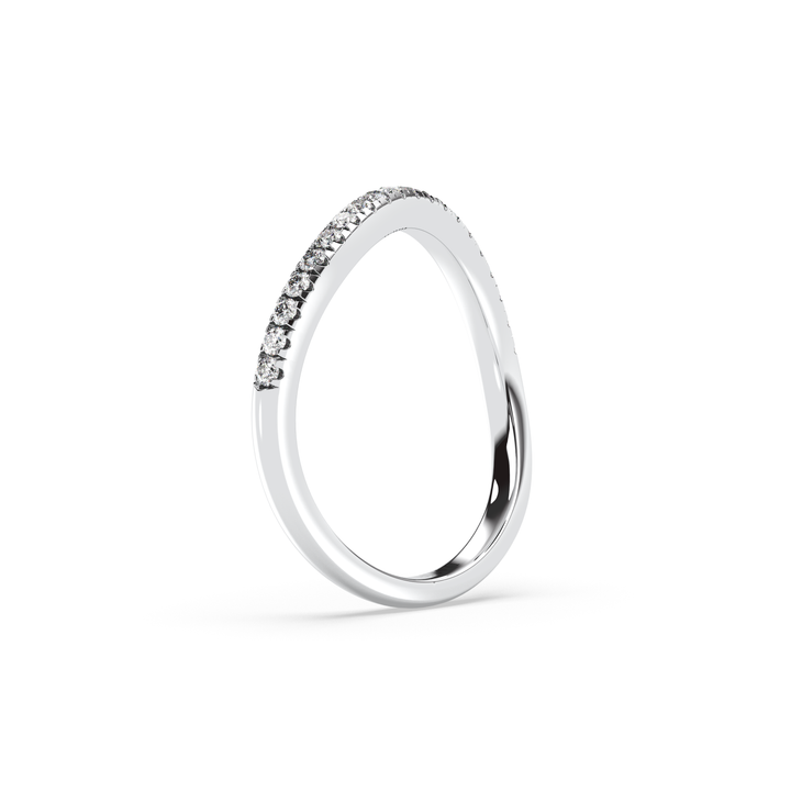 Designed for effortless versatility, this contour band fits seamlessly alongside engagement rings, stacks neatly with other pieces, or shines on its own as a subtle statement. Pure, refined, and gracefully shaped — a perfect capture of modern simplicity and bright white radiance